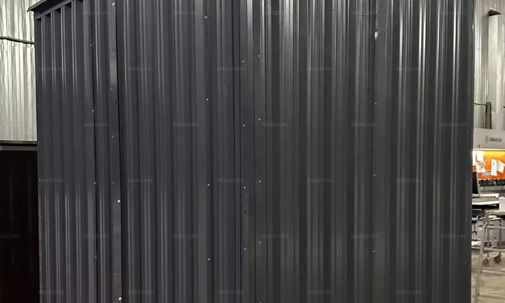 К нам обратился заказчик из КП Челюскинский парк, которому потребовался большой хозблок. Наш стандартный сборно-разборный контейнер ему не подошёл, так как планировалось размещение сразу нескольких квадроциклов, снегоуборочной техники (а она не маленькая), множество садового инвентаря, газонокосилок разных видов и т.д. Предложили автомобильный гараж 3х4 м. Крыша с уклоном, распашные ворота с дополнительной калиткой. Цвет заказчик выбрал шоколадно-коричневый.