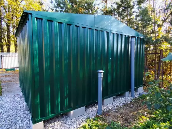И вот этот красавец уже стоит на участке и ждет пока в него заселят хозяйственные