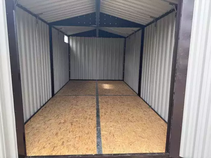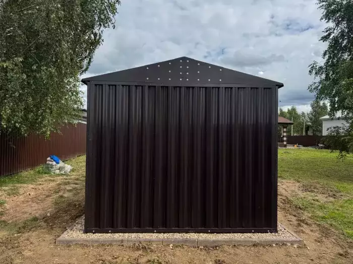 Проект: 6-метровый хозблок для хранения квадроцикла, велосипедов, лодки, инвентаря и садовой техники в расцветке "под дерево" Темный дуб.