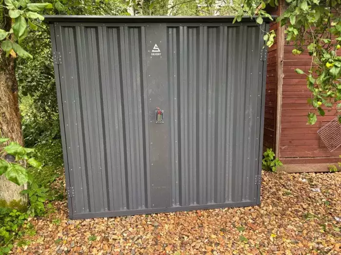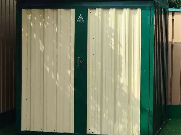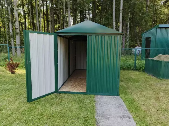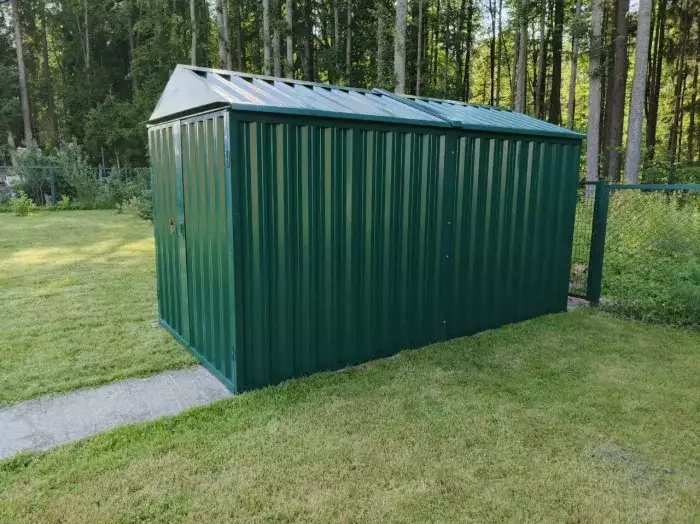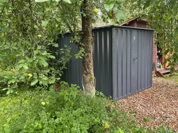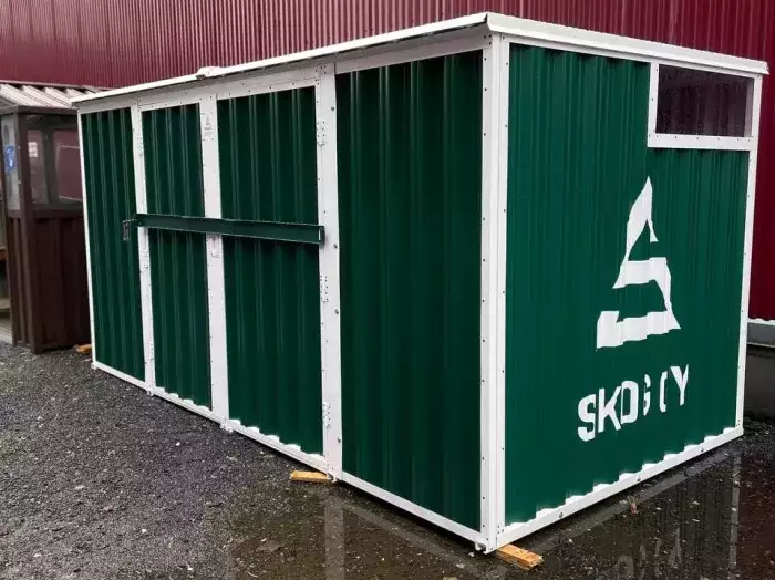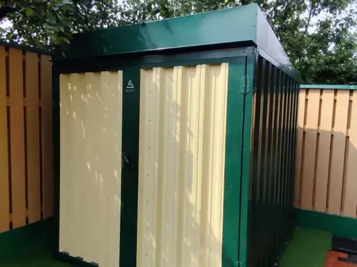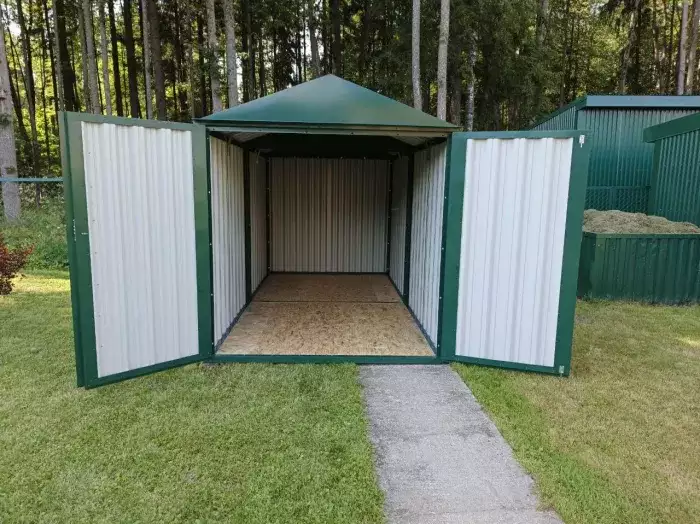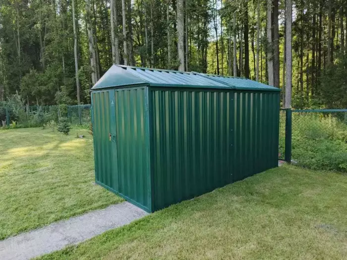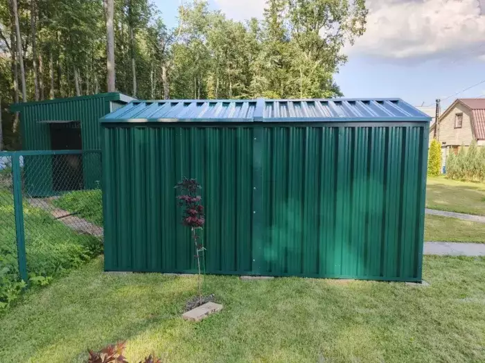 Проект: 4-метровый хозблок для хранения велосипедов и садового инвентаря в комбинированной расцветке.