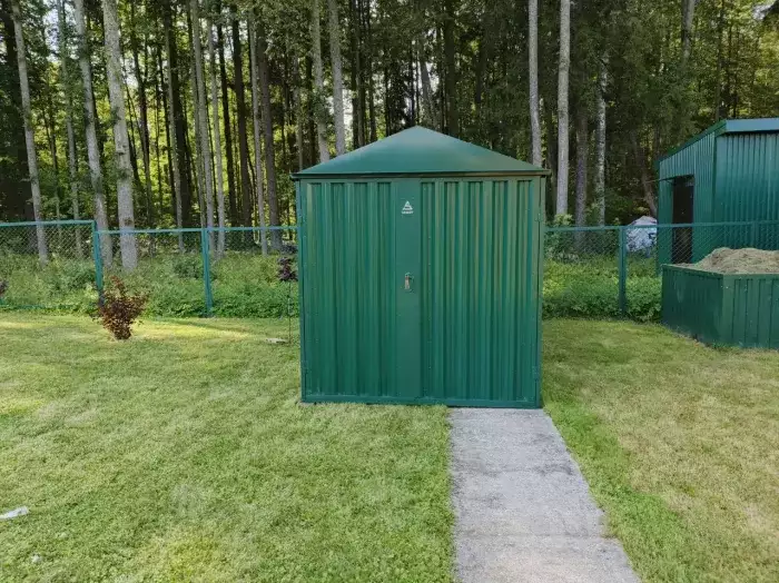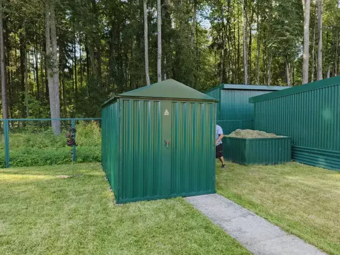 Заказчик этого проекта прежде, чем сделать приобретение, приезжал к нам на выставочную площадку для того, чтобы вживую увидеть наши конструкции и оценить их качество. Очень разумный подход! Постройка заказчику нужна была для хранения велосипедов и садового инвентаря.