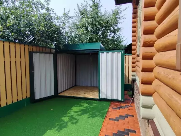 Доставляли хозблок на участок заказчика манипулятором в разобранном виде. Нашими специалистами предоставлялась услуга по сборке. Справились за 3 часа.
