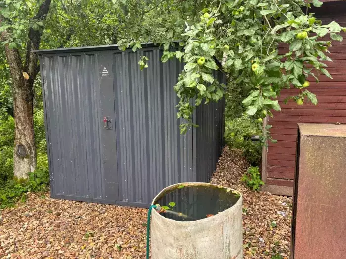 Дополнительно хозблок был оборудован велосипедной стойкой, а также пандусами для комфортного въезда техники.