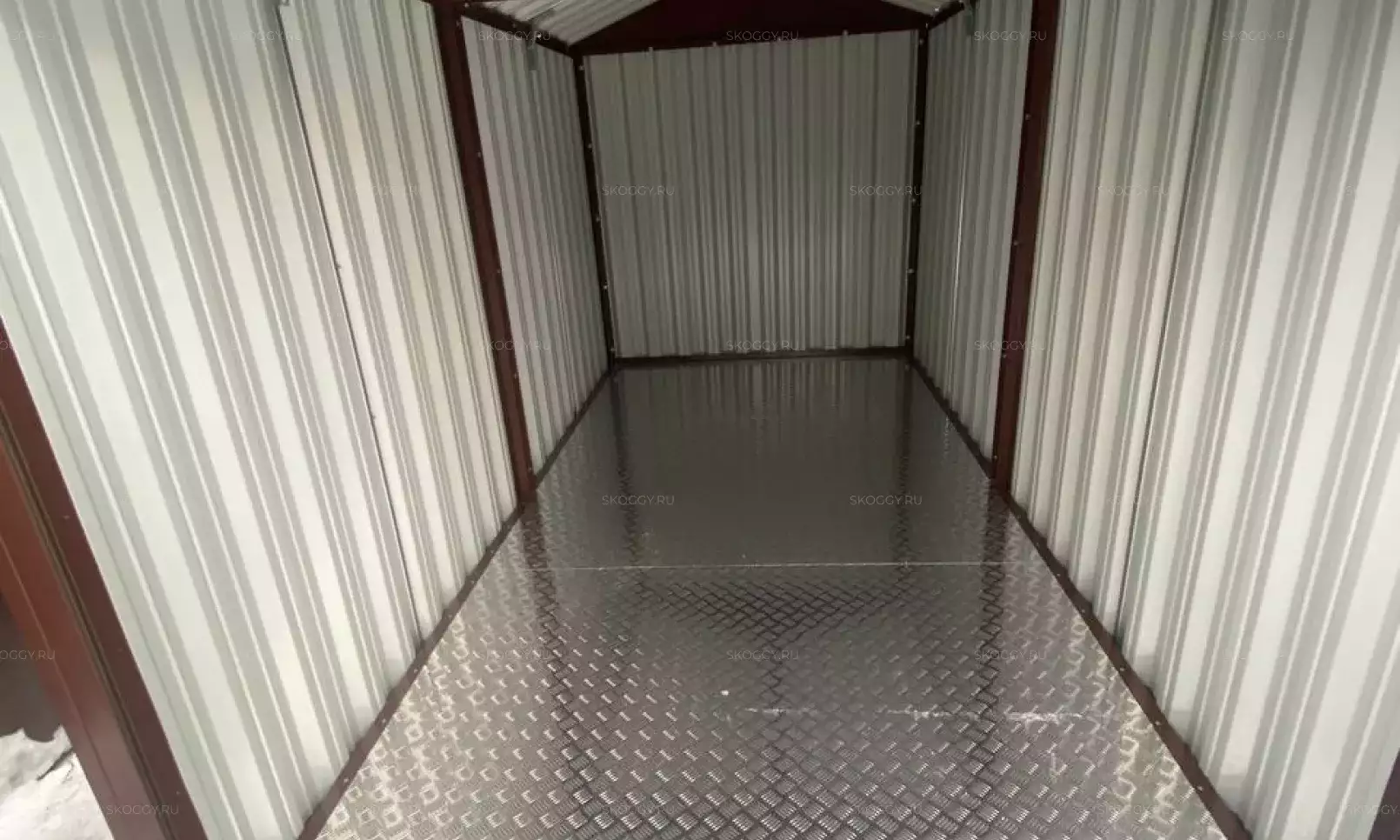 Дополнительно хозблок оборудовали прямым стеллажом с двумя полками в цинковом цвете.
