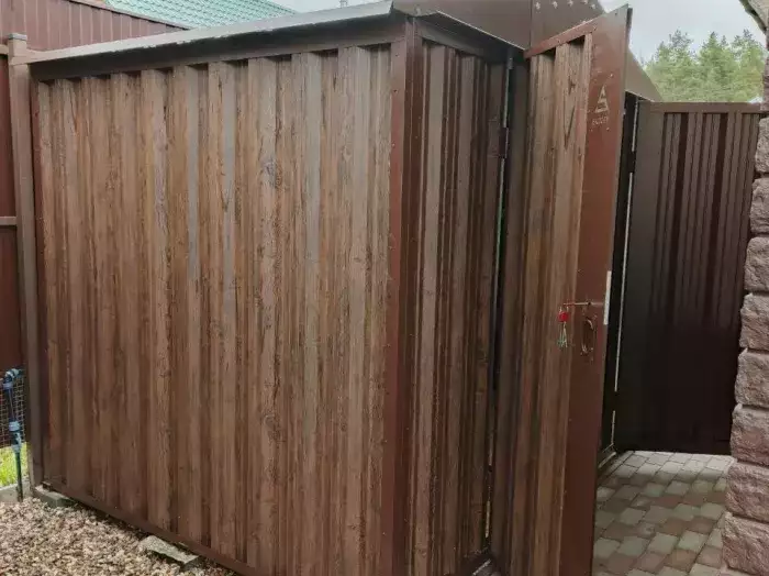 Доставляли хозблок на участок заказчика манипулятором в разобранном виде. Нашими специалистами предоставлялась услуга по сборке изделия. Справились за 4 часа.