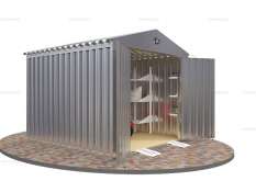 В пару забору, оформленному таким покрытием, вы можете заказать разборные хозблоки СКОГГИ. Это универсальные бытовые мобильные помещения из профнастила, в которых можно расположить склад, сарай, гараж и приспособить для других нужд на участке. Здесь удобно хранить садовые инструменты, запчасти расходники для автомобиля, хозяйственный инвентарь, дрова, консервацию. Эргономичные стеллажи помогут разумно использовать пространство и выгодно разместить на них все необходимые для хранения вещи. Покрытие внешних стен также, может быть, различных цветов и фактур. Это традиционный серый, спелая вишня или зелёный мох из палитры RAL, или же окрас под мореный дуб, орех, каменную кладку или даже ваш собственный принт. Благодаря этим возможностям ваш участок может стать уникальным и выдающимся на фоне однообразных соседских домов.